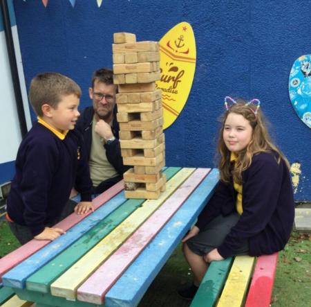 On Tuesday, a drone captured a special aerial photo of all the children together on the field. Wednesday saw everyone enjoy a retro 70s lunch, followed by families joining in with a fun OPAL Stay & Play.
