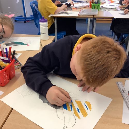 The children enjoyed creating mixed media self-portraits inspired by Egyptian art.